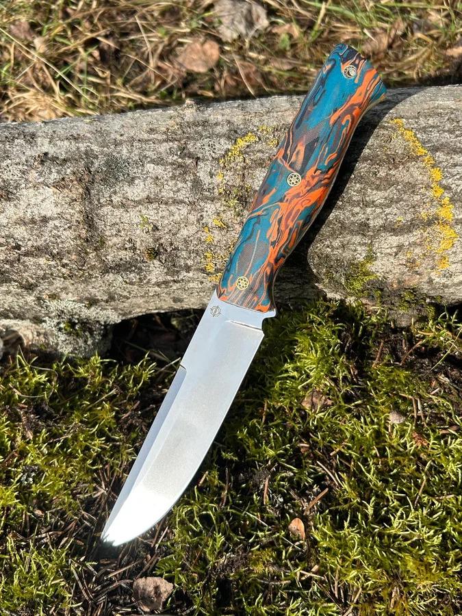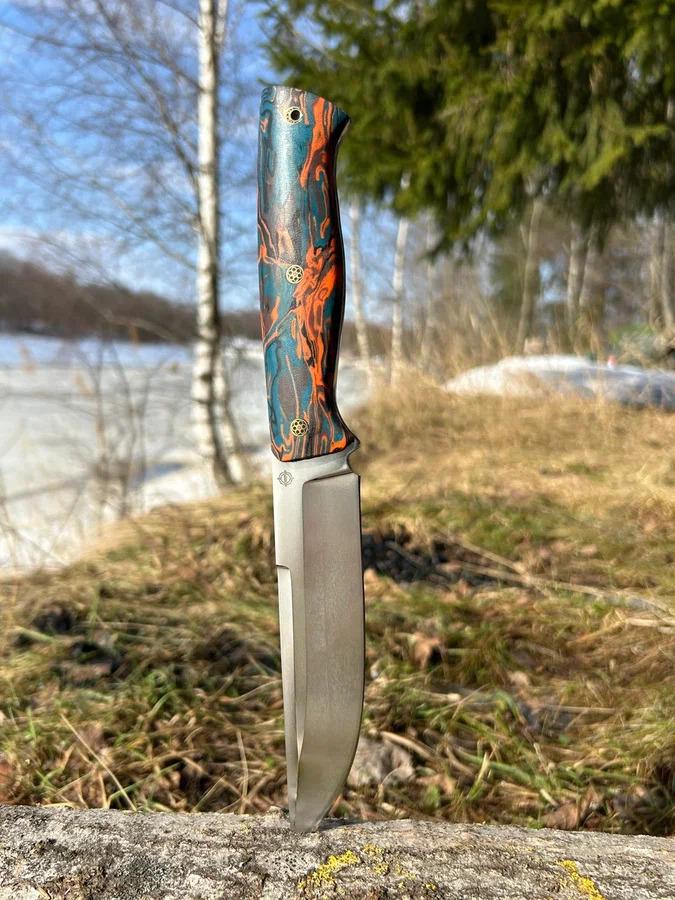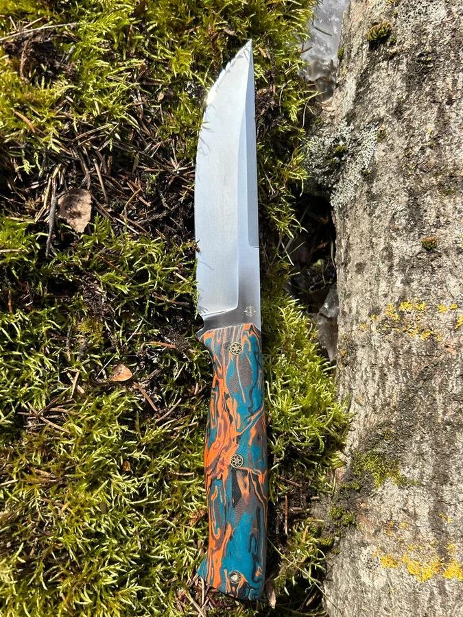 Партия цельнометаллических ножей из стали AUS10co. Закалка 61-62 HRC, толщина обуха 3–3,6 мм. Рукояти из G10 и микарты. В комплекте — ножны.